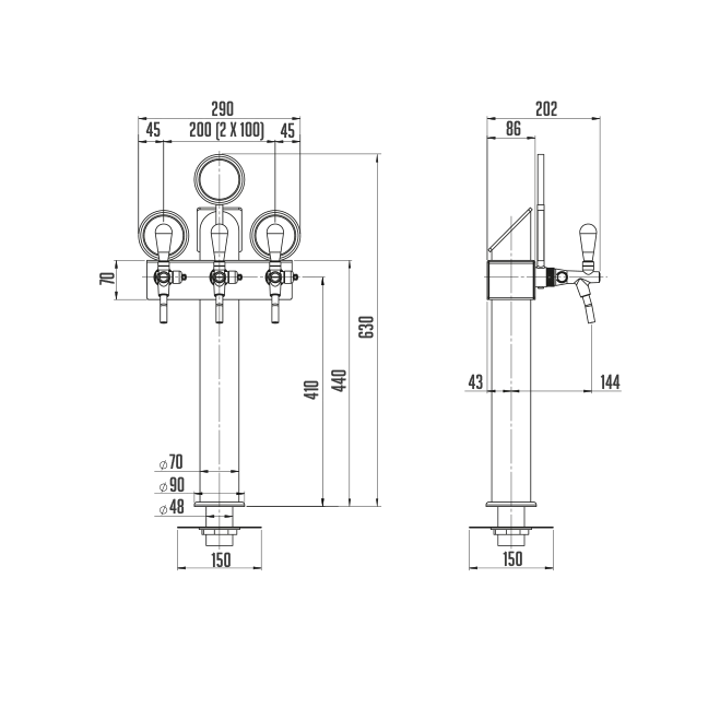 Раздаточная колонка LINDR T с вариативностью от 2 до 10 кранов