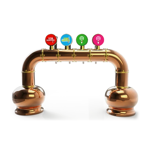 Башня для разливного пива Old Brewery с корпусом из позолоченной или омедненной латуни и настраиваемыми логотипами (80 мм). Доступно от 4 до 9 кранов.