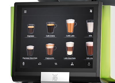 Все преимущества производительной WMF 5000S с добавлением интерактивного 10-дюймового дисплея, удаленного доступа WMF CoffeeConnect, а также: